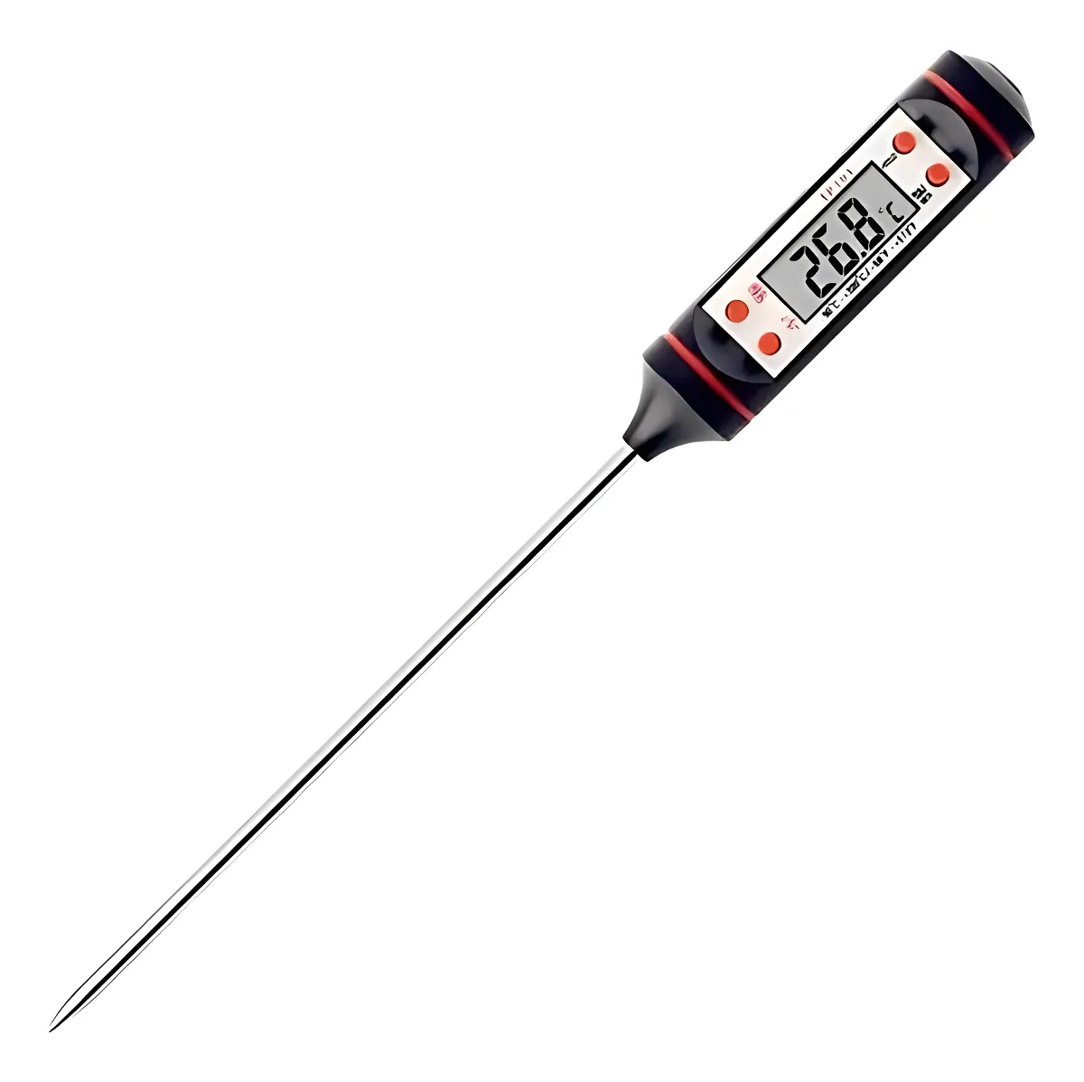 O design do tipo espeto, geralmente construído com haste em aço inoxidável (material resistente e higiênico, que não retém cheiros), permite a inserção direta em alimentos, líquidos ou sólidos para uma leitura rápida e exata. Sua interface digital clara, frequentemente em display LED ou LCD, oferece fácil visualização da temperatura, evitando erros de leitura.